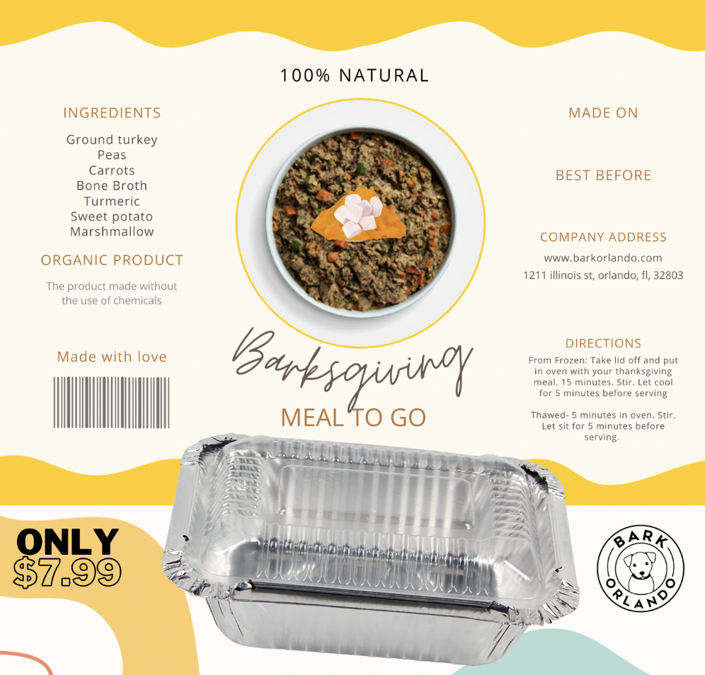 Barksgiving meal from Bark Orlando! All ingredients are organic and healthy for your pet to eat. For more information on ordering, check www.barkorlando.com