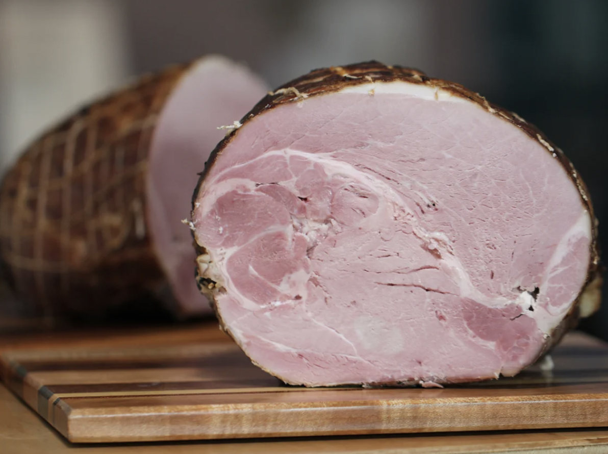 Whole Apple Wood Smoked Ham from Hinckley’s Fancy Meats! They brine their hams in brown sugar and natural sea salt before slow-smoking them for around 10-12 hours. For more info, check here: www.hinckleymeats.com